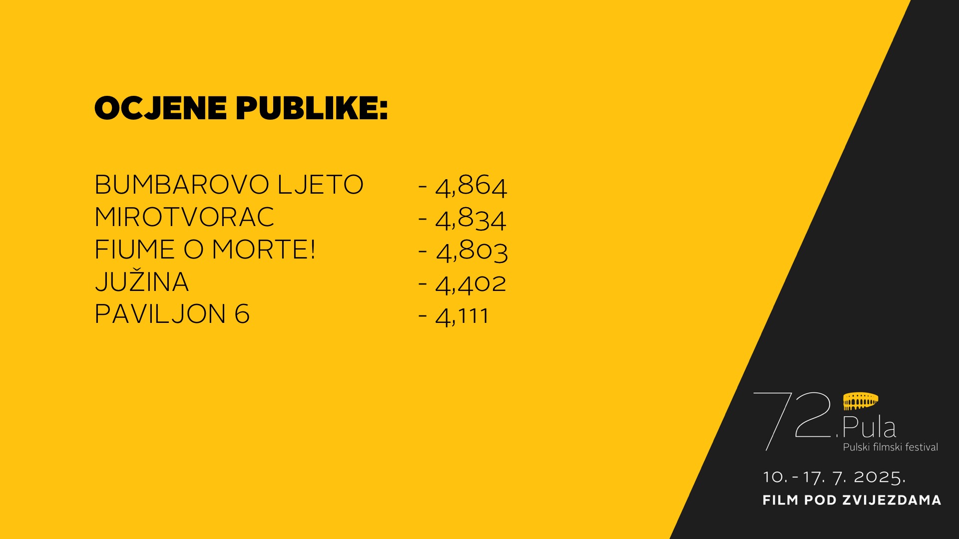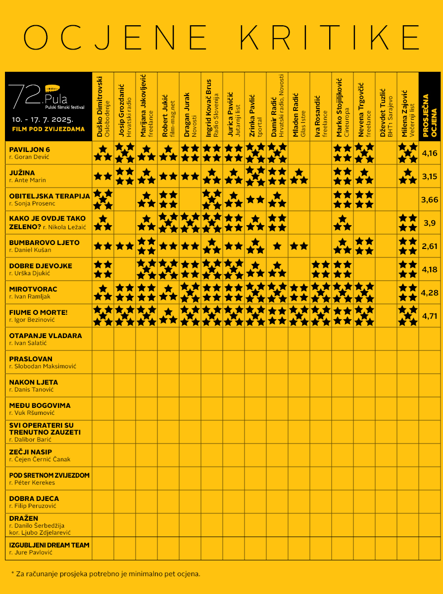 Although occasional showers surprised us at the Arena on Saturday night, the large audience was not discouraged and stayed standing to watch Fiume o morte! to the end, finding shelter from the rain under the arches of the Arena and the sound engineers’ tent. We are halfway through Pula Film Festival, and with the abundant programme everyone is excited to see new films and scores from the audience and critics